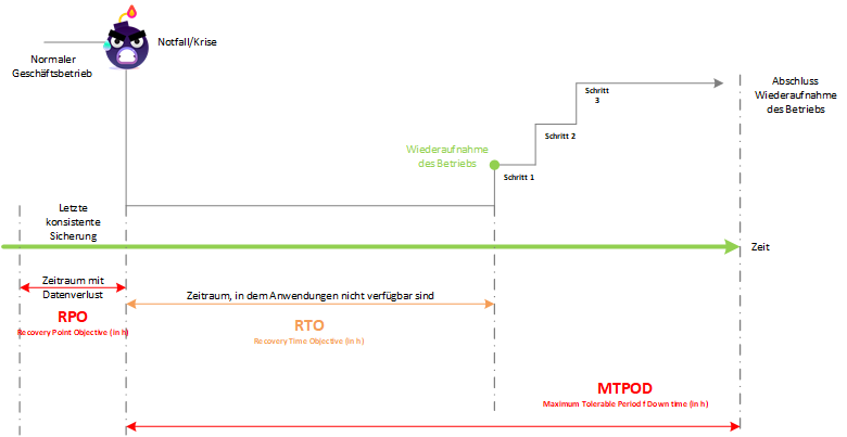 Ziel dabei ist es, Zeitspannen wie z.B. die maximal tolerierbare Ausfallszeit genau zu spezifizieren um rechtliche, behördliche oder vertragliche Anforderungen erfüllen zu können.